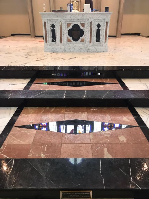 Description: New front altar and ambo along with new communion rail and flooring.